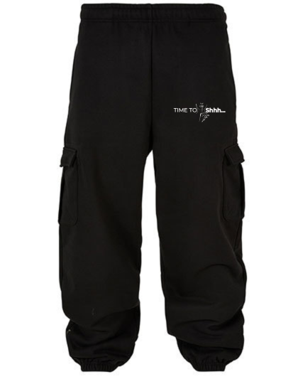 Detaljer: Elastisk talje, elastik ved ankler, to cargo-lommer, rummelig men ikke baggy